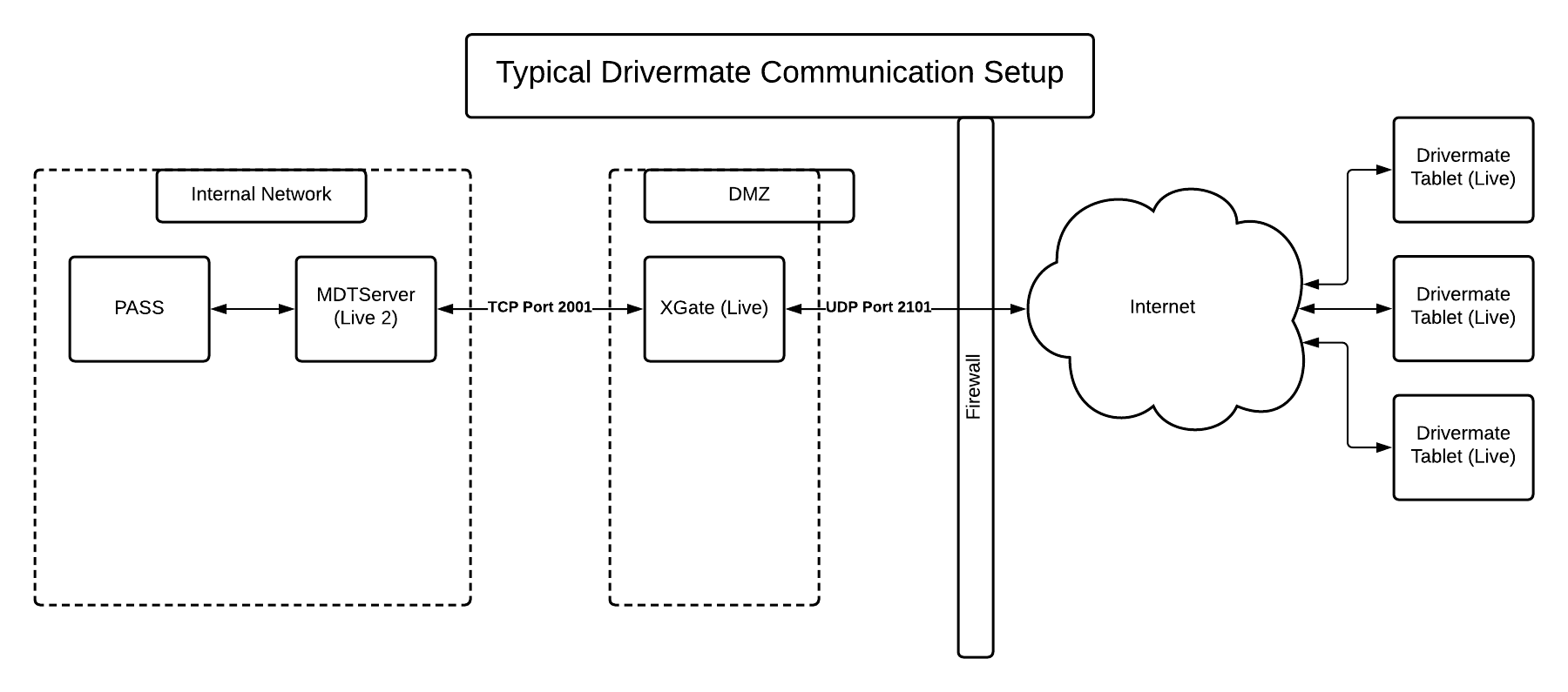 DriverMate communicates with your existing trapeze PASS or NOVUS installation using XGate communication gateway (previously MDC proxy) and Trapeze PASS-MON (MDT server).