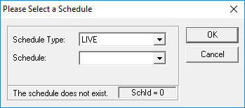 The Please Select a Schedule dialog box appears. The Schedule Types displayed are similar to the schedule types required for Trapeze PASS: Live or Template.