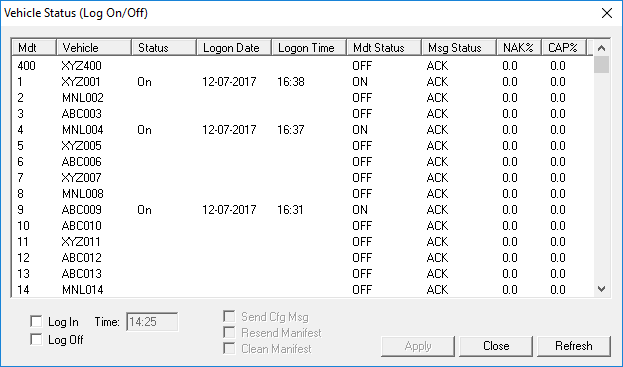 Click the Vehicle Status (Logon/Logoff) button: