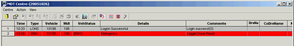 When you receive an emergency message from a vehicle, an Emergency Alarm message box appears in MDT Center.