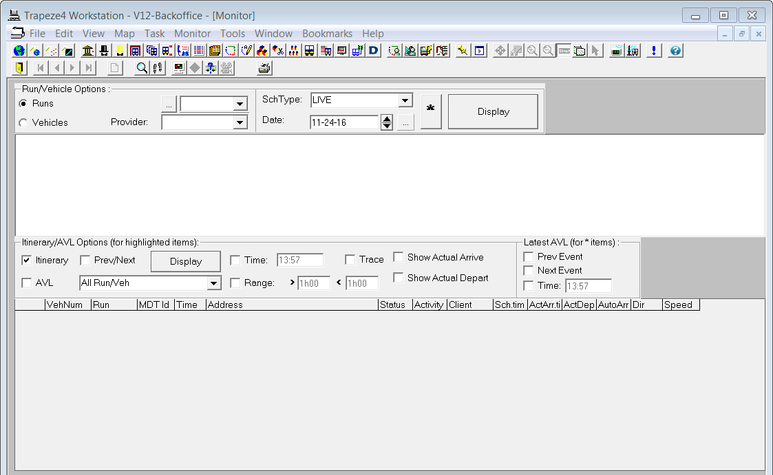 Opening the Monitor Screen Procedure Do one of the following: Click Task > Monitor. Click the Monitorbutton: ResultsThe Monitor screen appears.