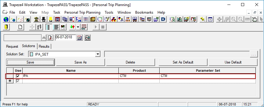 Associate the created solution for Trapeze personal trip planning: