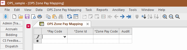 An OPS Zone Pay Mapping screen was added. Fields on this screen are Zone Id, Pay Code, Zone Pay Code, and Audit.