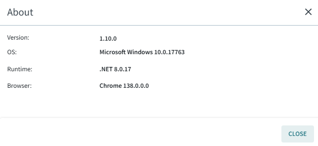 Version, operating system, runtime, and browser information appears.