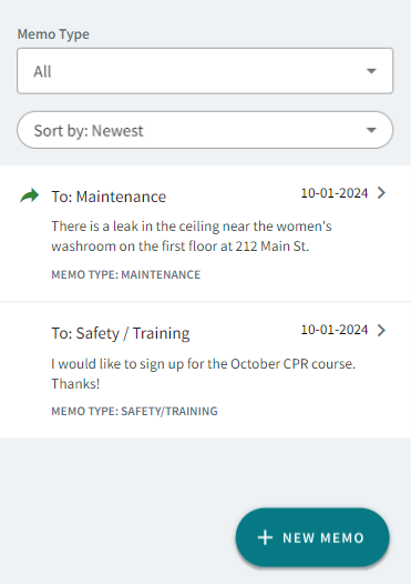 Select +New Memo.
