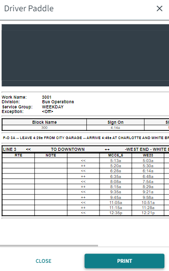 Note:The report format and included information may vary based on transit agency requirements. - Optional: To print a copy of the report, select Print.