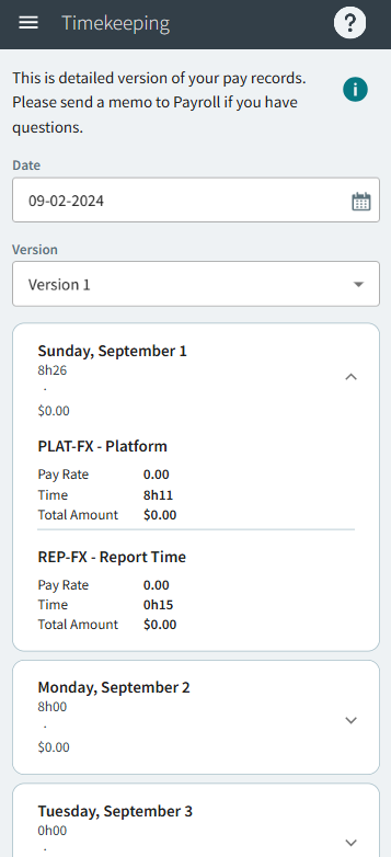 Multiple versions may be available if timekeeping changes were made after the pay period was originally posted.